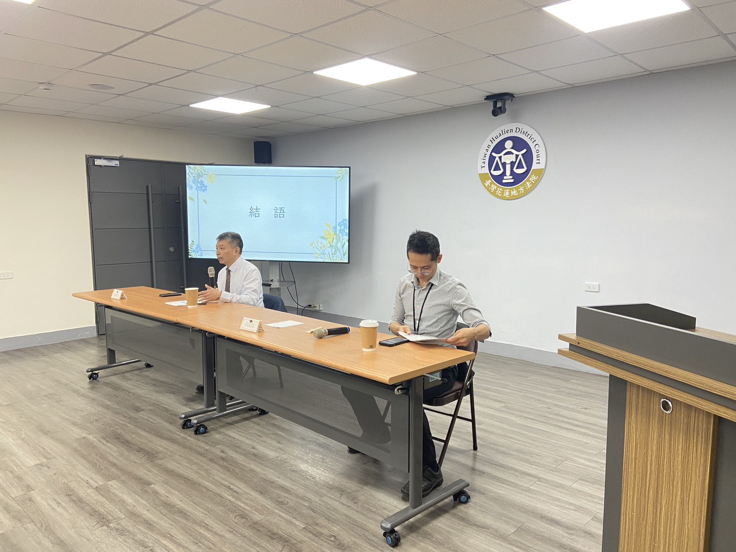 此次活動由刑事庭庭長吳明駿主持,吳庭長簡要說明兩起承審案件之起訴事實概要,幫助與會經驗者回顧案件。接續由經驗者、花蓮地方檢察署吳聲彥檢察官、辯護人林韋翰律師及呂秉炎法官分享審判參與經驗。